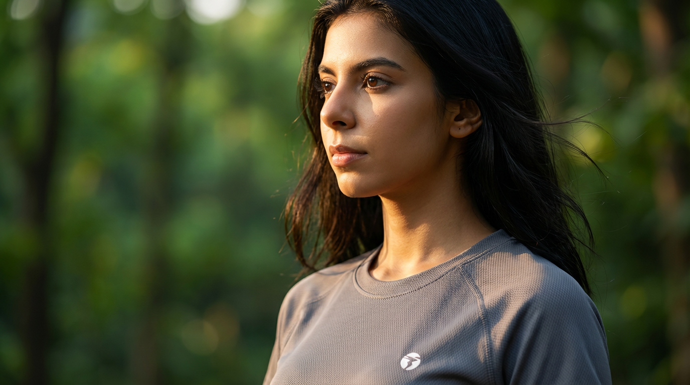 ![A highly detailed, cinematic close-up lifestyle portrait of [inserted image], worn by a young woman with dark hair, captured in contemplative side profile gazing into the distance with a calm, reflective expression. Warm, natural golden-hour sunlight casting gentle highlights on the face, hair, and clothing for a serene, immersive 3D depth with a slight breeze moving the hair. Blurred lush green forest background evoking peace, escape, and connection with nature, shallow depth of field with razor-sharp focus on facial details, skin texture, and shirt material, high contrast, ultra-high resolution, professional activewear/outdoor apparel advertisement style conveying mindfulness, freedom, and the need for space to breathe similar to Technosport promotions.](https://media.masonry.so/uploads/feed/assets/8cf98f07-f478-4fb9-b954-8f79b7940343.png)